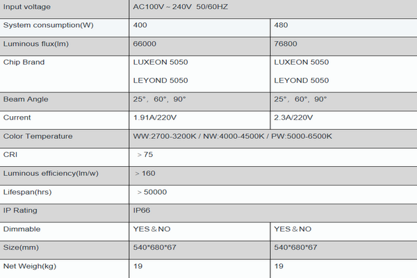 100-500W Modular LED Stadium Light LUXEON 5050 Chips 160lm/w IP66 90-260V AC Images |