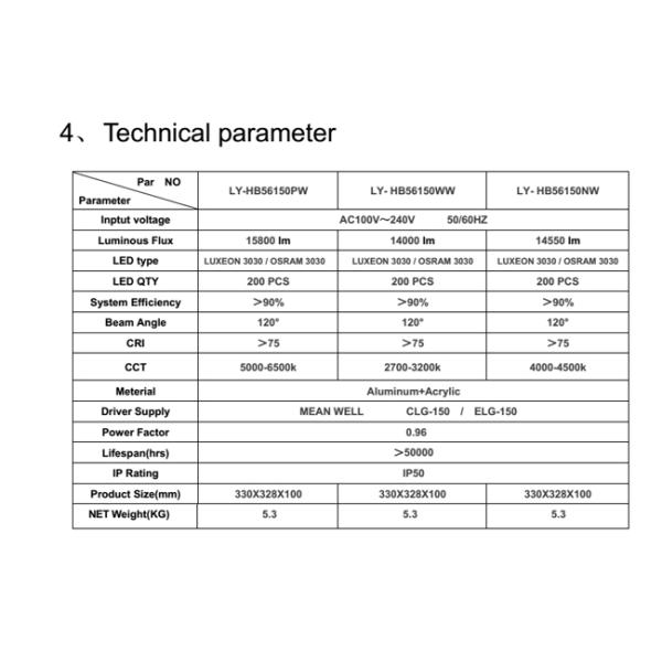 Luxeon 3030 Chip White Color Warehouse Lighting 100LM/W 150W LED Low Bay Light With Meanwell Driver